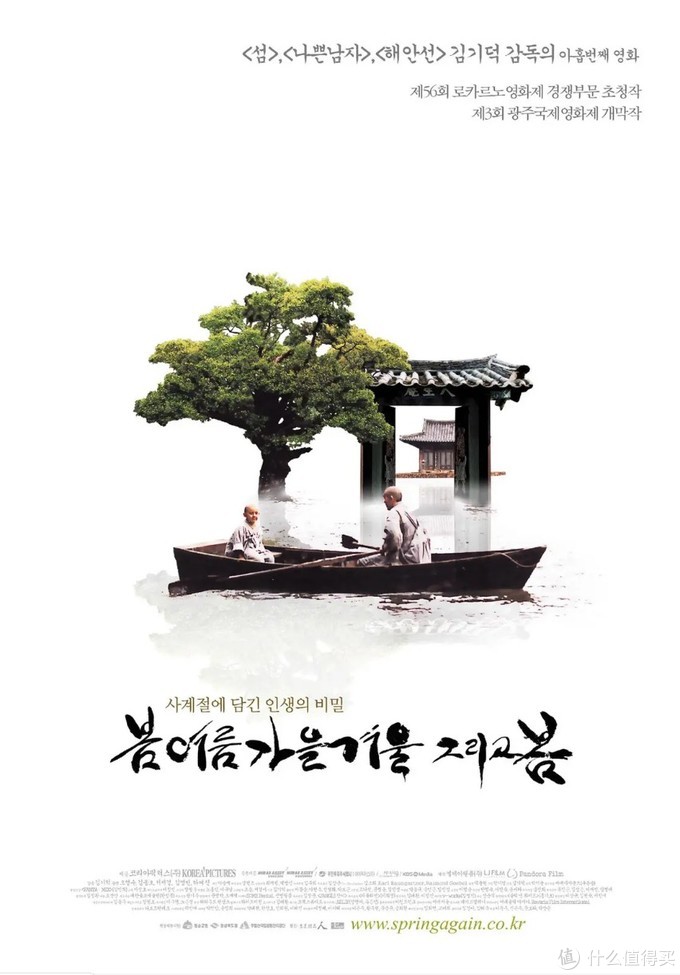 悬浮在水上的庙宇,随着涨潮落潮出现的庙门,后山的溪流池塘,外面的花花世界,金基德把人世间的事物简化为几个场景,人生起伏意象化为四季,在这部安静甚至显得无聊的电影中,诠释禅境。