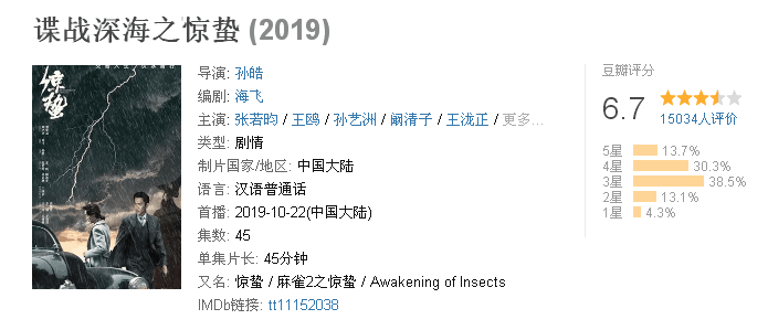 谍战剧《谍战深海之惊蛰》(以下简称《惊蛰》)是一部神奇的剧集,在开播时有多精彩,结尾时就有多失望。豆瓣评分也从最初的7.7分滑到6.7分,一部剧从始至终,有这么大的落差,出品方也该反思下了。