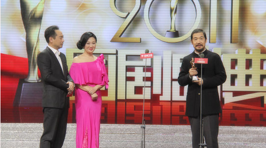 2011年,带着女儿出席国剧盛典领奖,老友张国立帮忙颁奖;