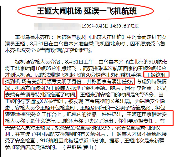 查资料的时候,我发现王姬早在1999年就有大闹机场的“黑历史”。