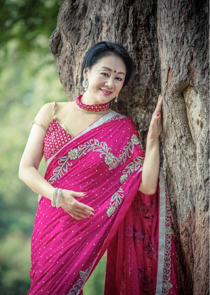 照顾生病儿子、力捧女儿有余,时不时出国旅游,化身印度风情女郎,