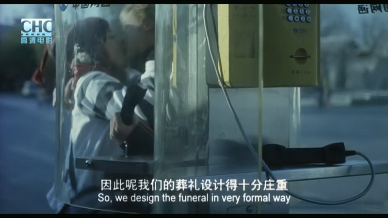 - 殡仪馆缺少人文关怀的电话咨询:敬大爷给殡仪馆打电话咨询的时候,电话那头的服务人员嘴上说着“尊重死亡、维护生命的尊严”,但极力推销的过程还是不免让人产生反感。敬大爷放下电话离开了,但是镜头却给到一对正在拥吻的情侣,极具反差的两组镜头反映出“传统”与“现代”的碰撞,最终还是以“传统”落败收场;