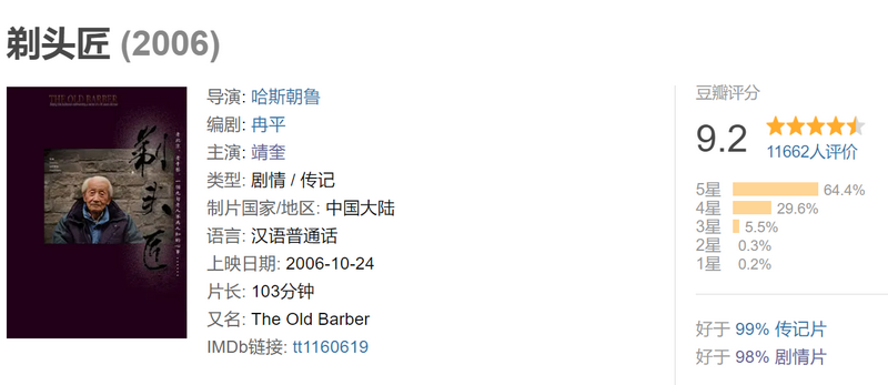 相比于那些只为博人眼球的类型电影而言,《剃头匠》节奏缓慢、平淡无奇,但细细观影,却发现影片拥有巨大的戏剧张力和直击心底的情感内核。