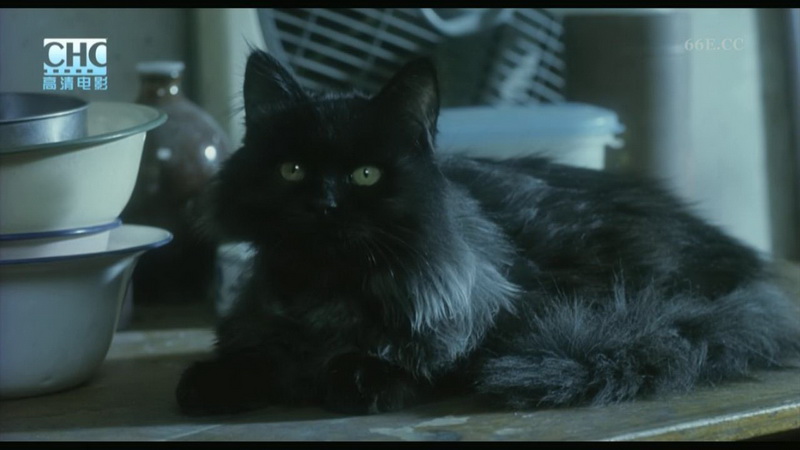 影片中,敬大爷第一次上门给米大爷剃头的时候,黑猫出现在镜头中,并始终用一种阴冷、深邃的眼神凝视着交谈中的两个老者。
