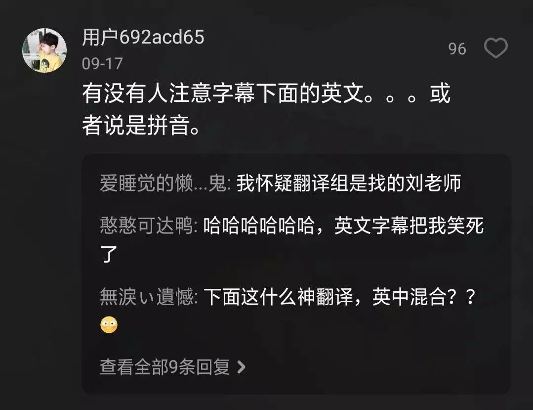 这个“坑”最后成为了让网友们津津乐道的亮点,每一集都有网友在评论里“安利”大家注意英文字幕,他们还会调侃:“这是不是刘老师接的私活?”