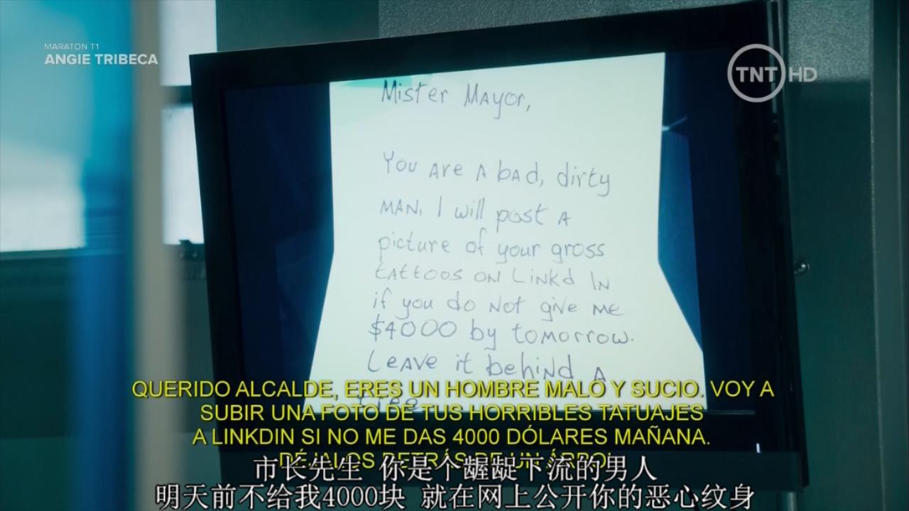 在绘画课上,拉姆教授不仅一次表示对翠贝卡肌肤的赞美,对纹身的厌恶,并义正言辞地言明,“如果他有权有势,而我又可以赚个4000块,当然了”,令翠贝卡确定拉姆教授就是勒索案的凶手。