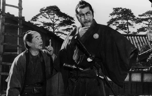黑泽明的《用心棒》是莱昂内的《荒野大镖客》的原版,故事完全一样,甚至每一场戏都差不多,只是前者黑白后者彩色,前者用枪后者靠刀,前者日本浪人后者美国牛仔,用心的对比一下可以发现,莱昂内虽然是翻拍,但是很多细节的交代比黑泽明的原版合理性大大增强,节奏也更明快,可以说翻拍更胜原版。这大概是黑泽明最放松的片子了,明快,凌厉,甚至有些幽默。