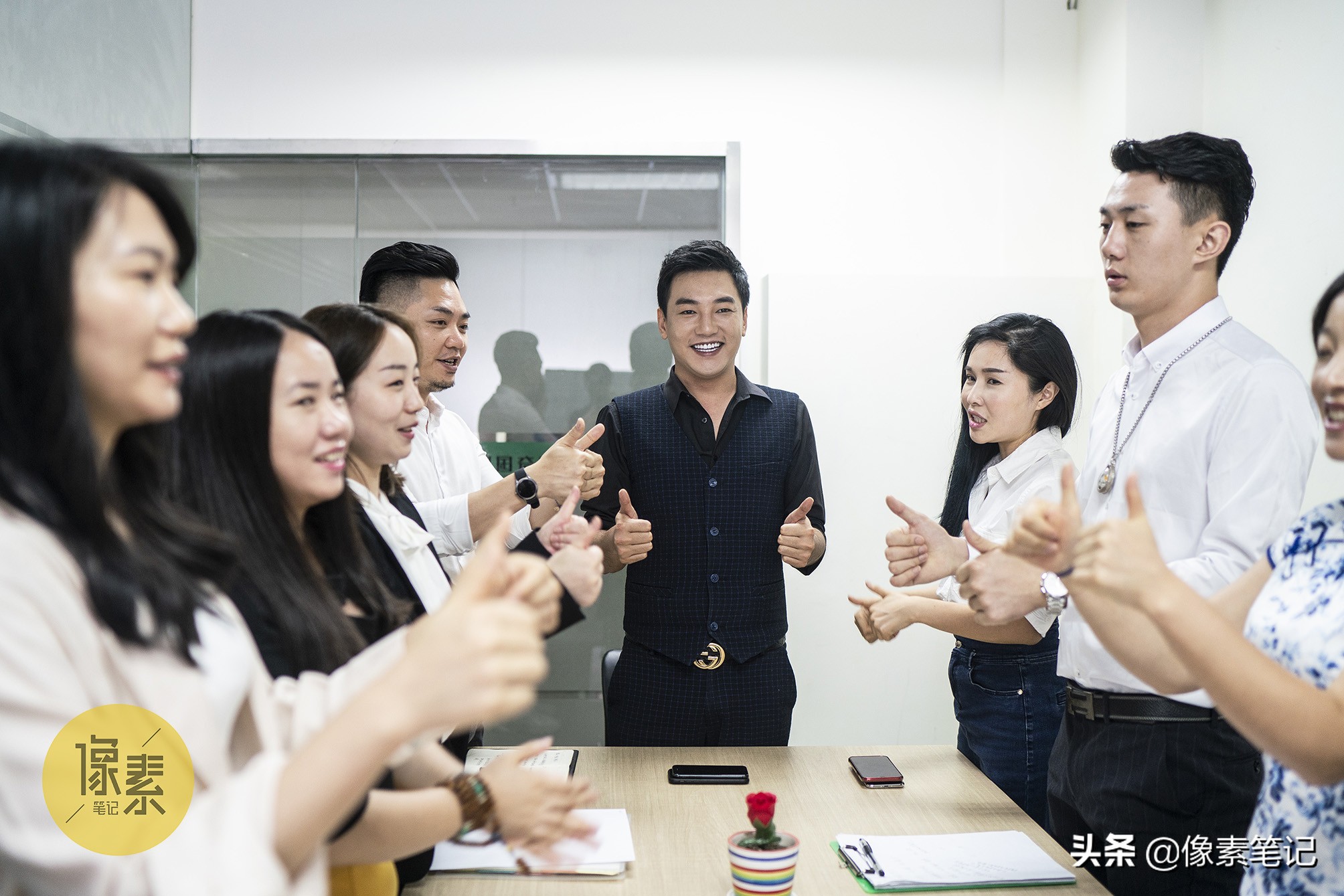 公司晨会,袁奇峰为员工加油打气。一个公司是做美容行业的,常常需要开展线下公益活动。有时候,为了给加盟分公司捧场,或参加好朋友的活动,袁奇峰还会穿着“游乐王子”经典的蓝色服装出席活动。照片一经传到网上,网友们就误以为他靠走穴、商业接活来挣钱过日子。“有时候通过商演,《巴啦啦小魔仙》的原班人马才得以相聚,叙叙旧”。