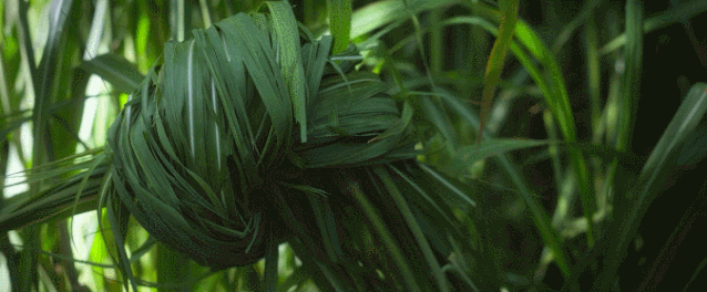 比如,查尔斯进草丛后,一边走,一边给杂草打结,标记自己走过的路。