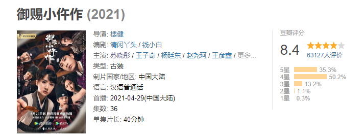 最近正在热播的电视剧《御赐小仵作》可谓是“闷声发大财”,虽然无流量、低成本、小制作,而且宣传不给力,但仍旧凭借着过硬的质量获得了观众们的青睐,如今口碑节节攀升,目前豆瓣评分已达到8.4分。