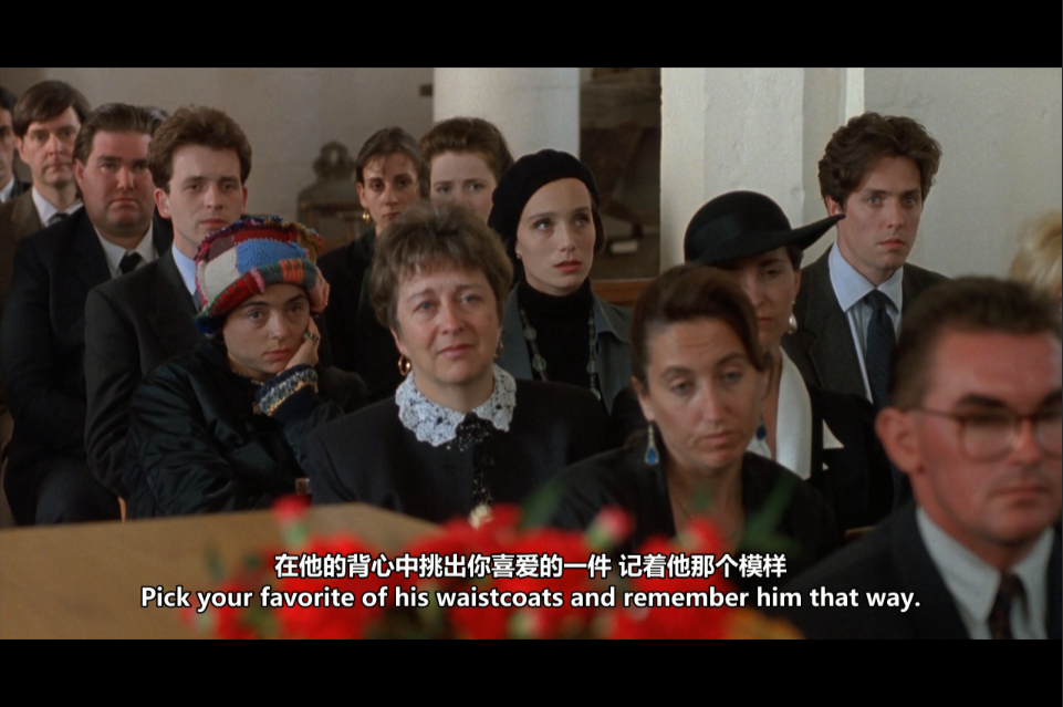 而偏偏唯一的那场葬礼,死去的人确实带着最好的幸福和爱情死去的,因为上场做悼念词的是他的爱人,而这也是整片电影的泪点所在。