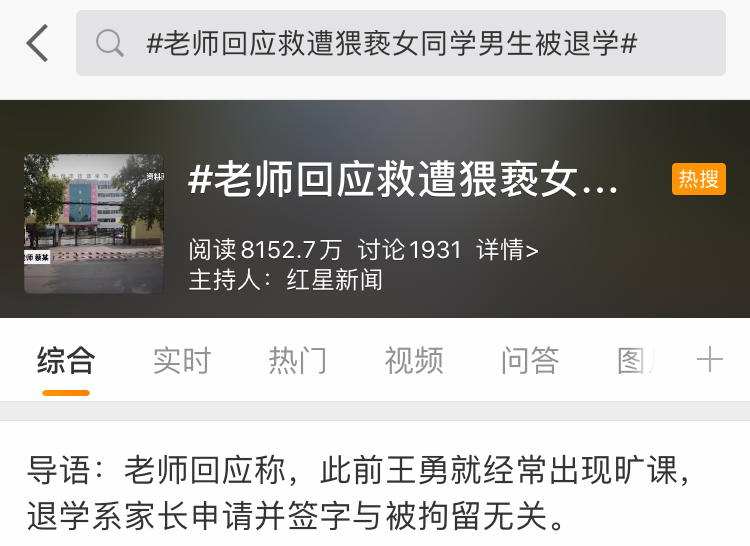 那么,前阵子那位解救了被猥亵的女同学,却又因时常旷课、不服从学校纪律被退学的男生。