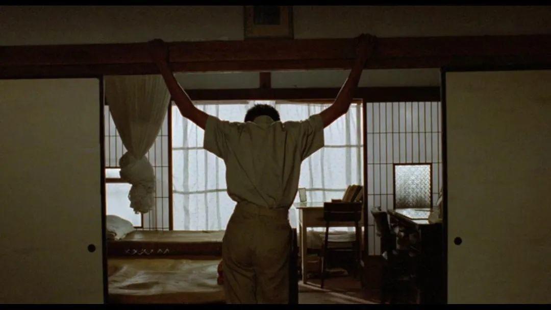 另一个,是看似平淡的一个镜头——男主角小四,两手往梁上随性一搭,却和耶稣受难,如出一辙。