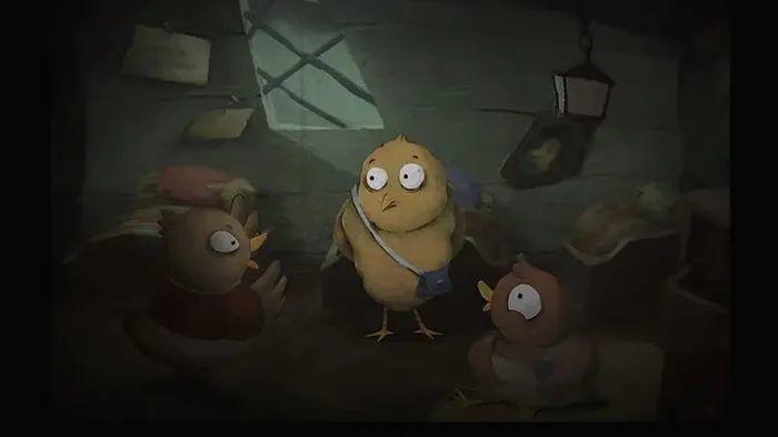 《回响》后半段,再现了剧中那个出名的,三只小鸡到狐狸家做客的童话寓言。