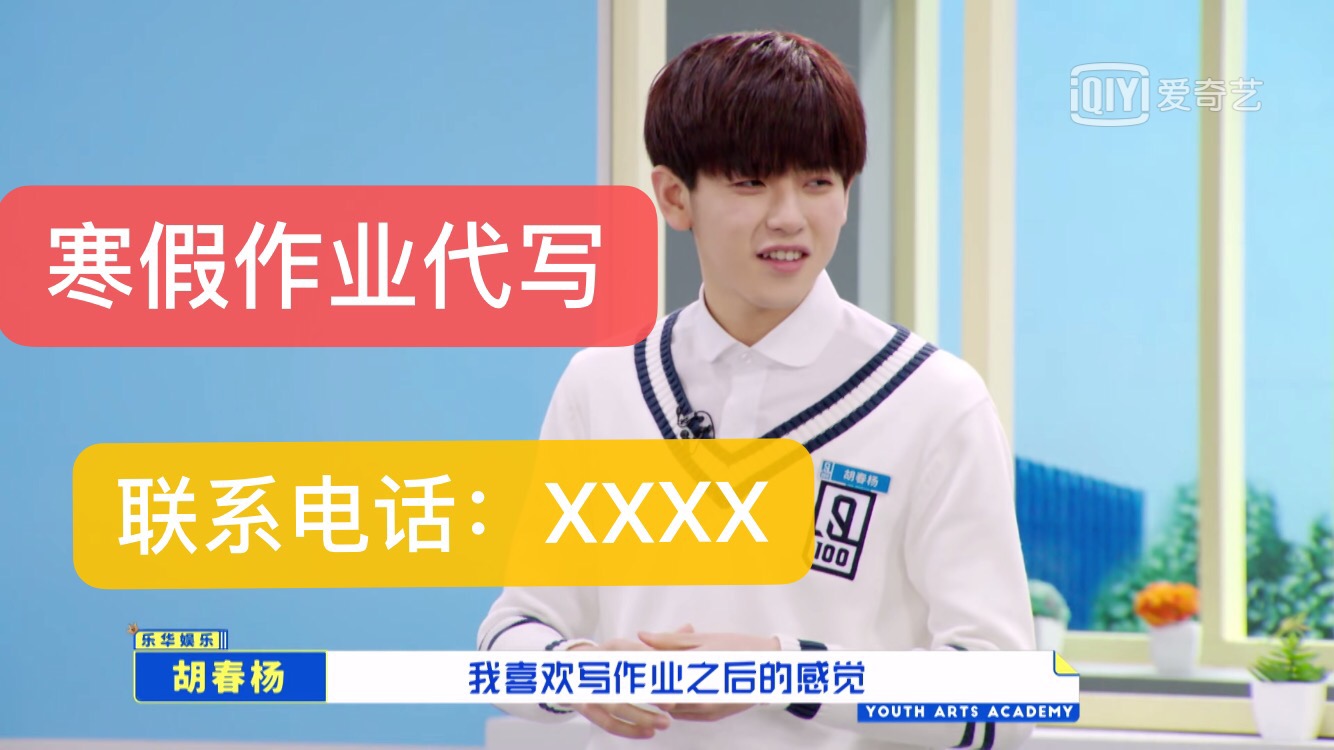 更难得的是,胡春杨不仅能下乡“演戏”,回城了还能变身学霸写作业!“比起吃饭更喜欢写作业”,看看这是什么学霸发言!这也激发起了青妹的创作欲望,只需一张图,就可以给你玩出花来!比如这个,“寒假作业代写”配上下面胡春杨“我喜欢写作业之后的感觉”,真的是怎么看怎么觉得合适!