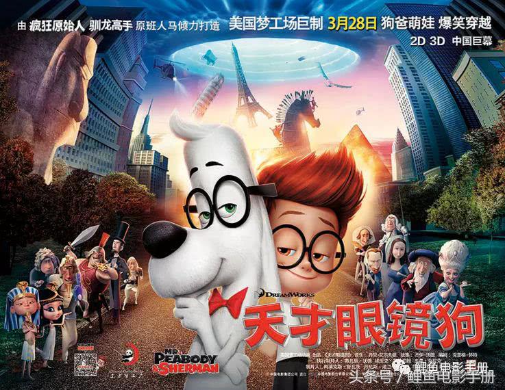 《天才眼镜狗》(英语:mr. peabody & sherman)是2014年美国一部3d电脑动画科幻电影。 影片中角色取自20世纪60年代的美国动画剧集"the rocky and bullwinkle show",并以全新故事加以动画特效制成电影。 故事围绕一只世界上“最聪明狗狗”皮博迪先生收养了一个人类小男孩谢尔曼而展开了一段奇妙旅程。为了让他的养子能更好的见证世界的奇妙,他自己发明了一台时光穿梭机。皮博迪与舍曼一起穿越时空,四处冒险,并闹出各种笑话。
