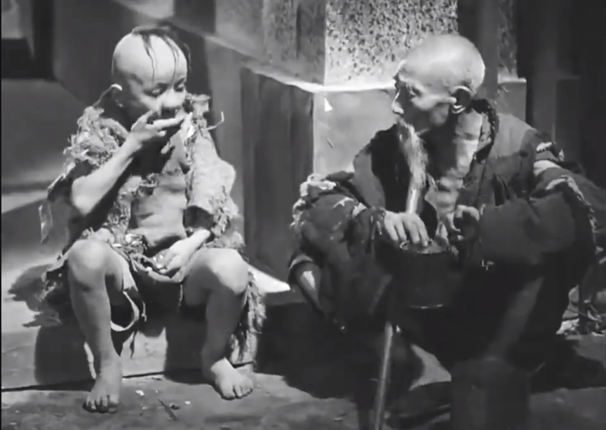 第二天早上,张乐平再次路过那里,发现昨天晚上那三个流浪儿童已经冻死了两个,沿街开车收“倒卧”的人像收一截木头一样将孩子的遗体扔进车厢拉走。