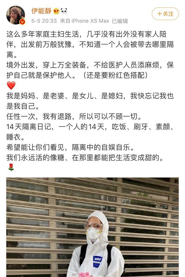 另外,伊能静在4月26日就发文表示想念儿子与女儿,还说"希望你知道妈妈是想来很久才做的决定"。这说明她4月就已经离开台湾来内地隔离,而那个决定不出意外就是录制《乘风破浪的姐姐们》。
