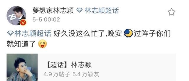 林志颖在2013年通过《爸爸去哪儿1》再次翻红后,又因为做微商被方舟子斥做假广告翻车,近年又再次消失在大众视线。而他可能真的通过《我最爱的女人们2》回归娱乐圈,因为5月5日他在自己的超话发文:"好久没这么忙了,晚安,过阵子你们知道了。"明示自己将带着新节目回归。