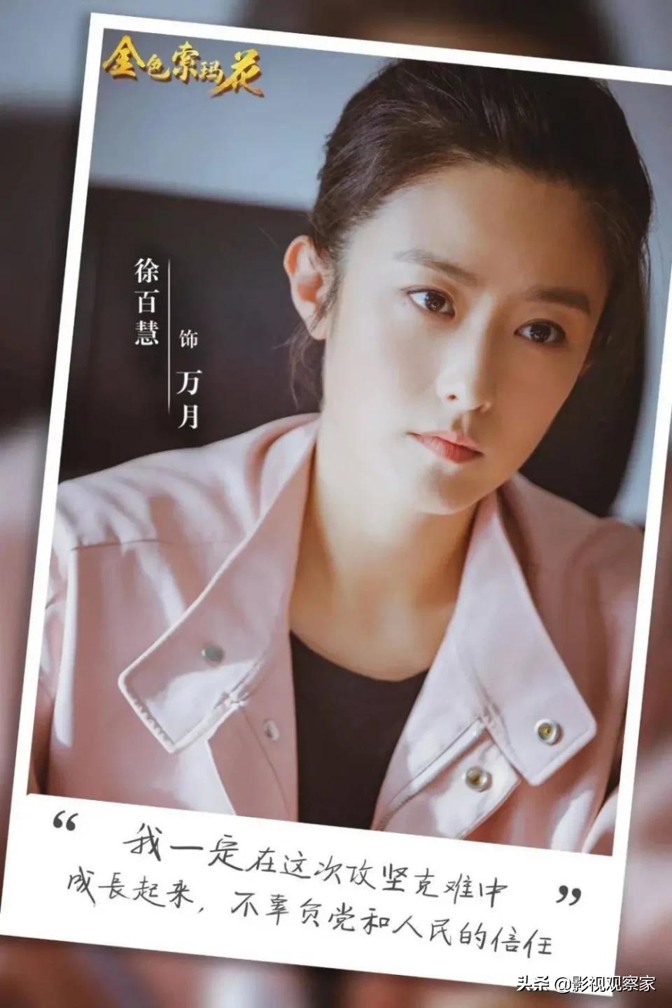本以为脱贫攻坚题材会比较严肃,没想到徐百慧饰演的第一书记万月却莫名搞笑。她一出场就和男演员拿反了剧本,凭借霸总人设狠狠圈粉,还无意输出了“渣男语录”,这个生动有趣的第一书记着实让人惊喜。电视剧《金色索玛花》今晚在央视一套收官,凭借剧中收放自如的演技和美到出圈的港风原生脸,徐百慧这个宝藏姐姐走进了大众视野。