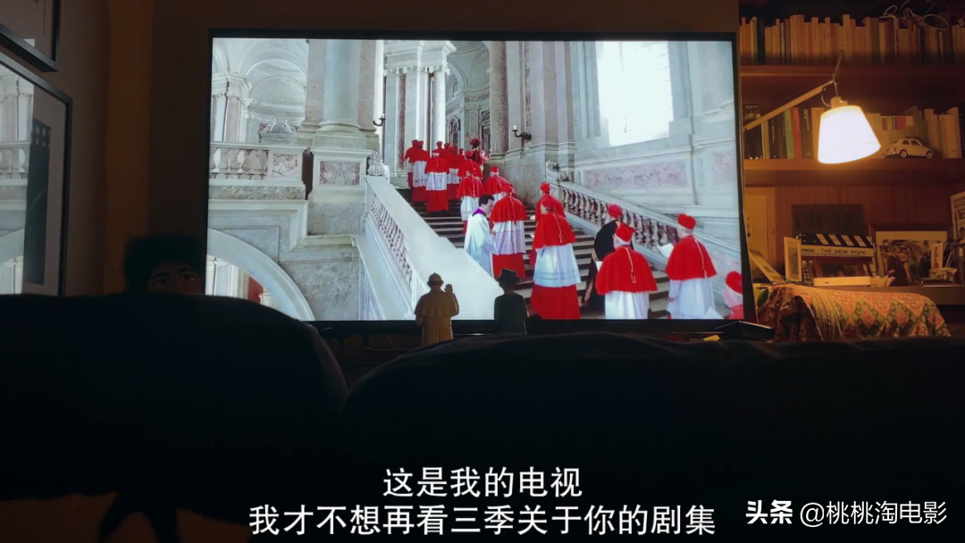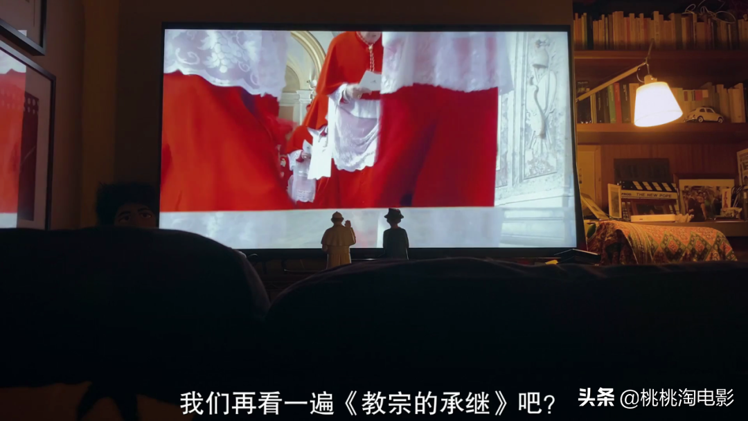 其中我比较喜欢的一段是俩人一起看电视那段。然后,教皇带女王看《教宗的承继》(一部关于教皇自己的电影,去年网飞上映)