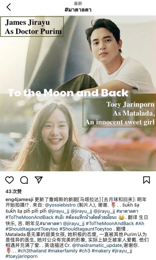 过了这么多年,三台终于开眼了,前几天宣布两人将合作新剧《to the moon and back》