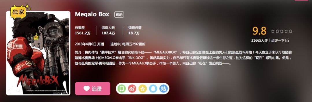《megalo box》无论是制作、剧情还是人物设定都可圈可点,各大平台上一水儿9+评分也足见其实力。