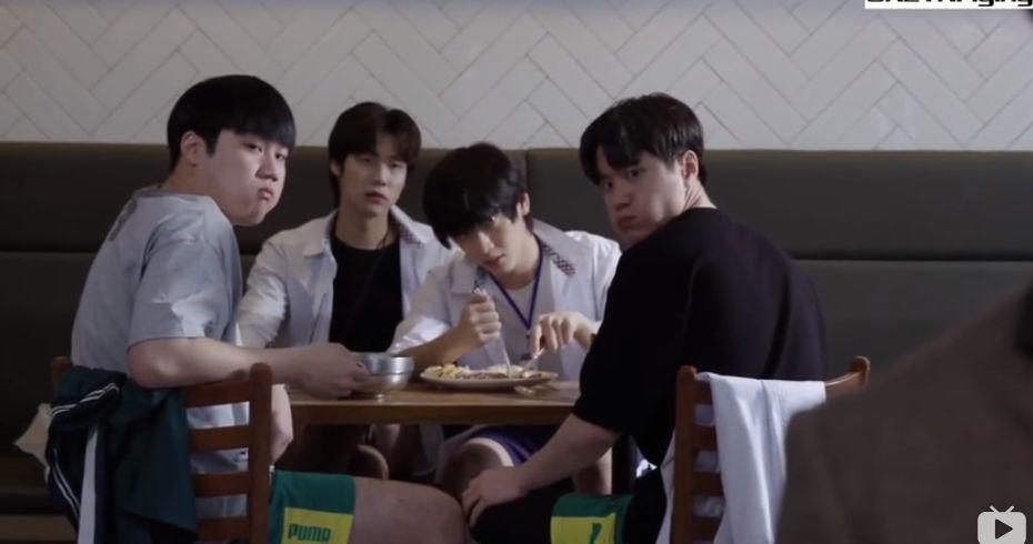 在一个充满青春气息的小吃店,有一桌学生正在打闹。