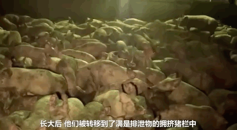 这些成年的猪,大部分时间都生活在拥挤的猪栏当中。