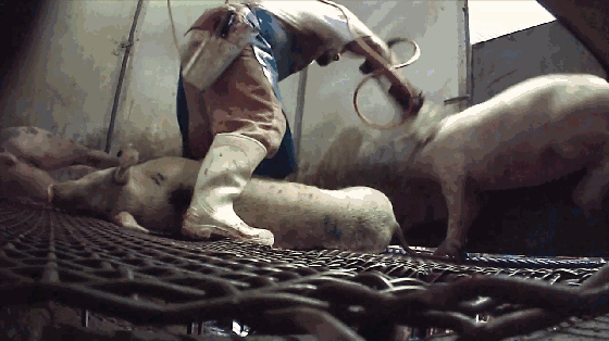 而那些生来就体弱的小猪,被认为对于企业的经济毫无帮助,就会被饲养员直接杀死。