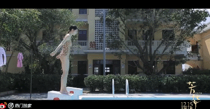 比如《芳华》中泳池边的一场戏,导演临时提议,让线条感很好的钟楚曦从跳板往泳池里跳。