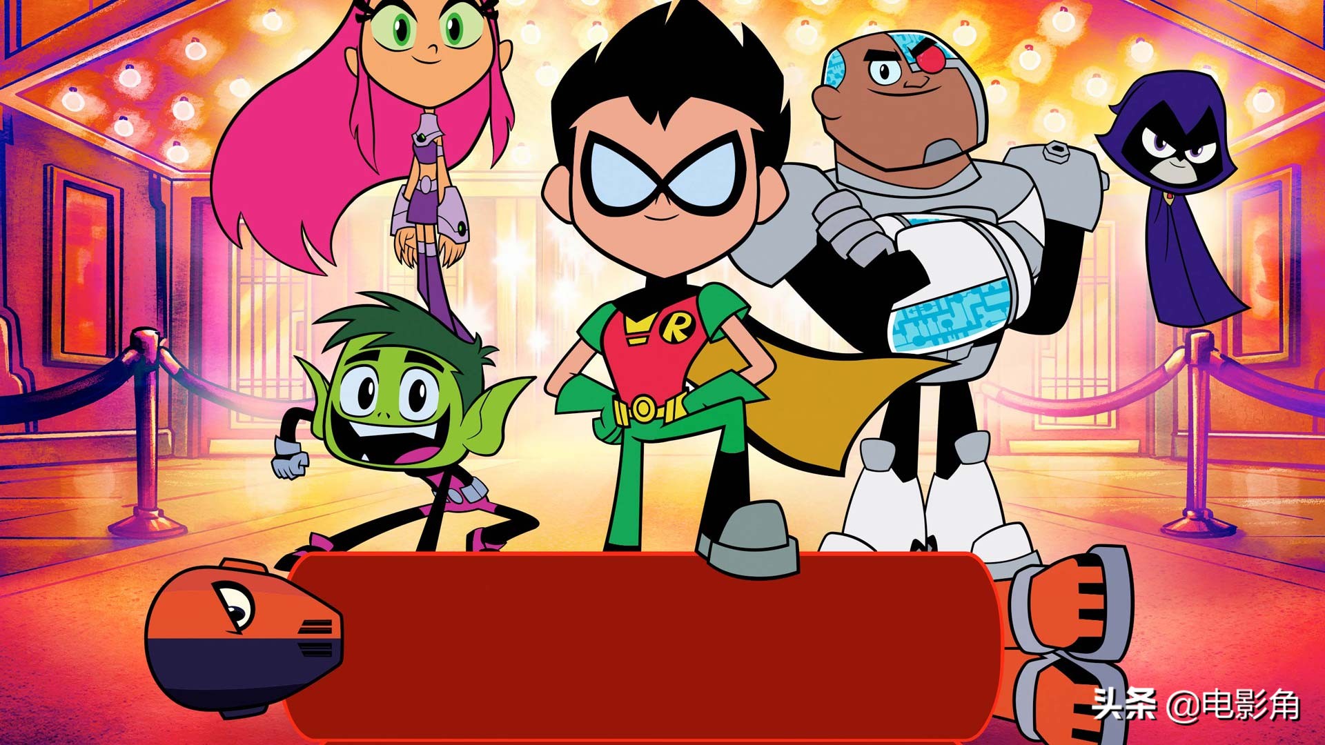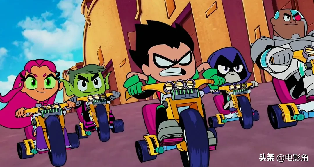 这部电影是电视动画《少年泰坦出击》(2013-)的衍生剧场版。如果你没接触这个系列,对少年泰坦的了解仅限于漫画以及其他一些dc动画中的版本,那么这部电影的卡通风格可能会让你觉得无所适从。