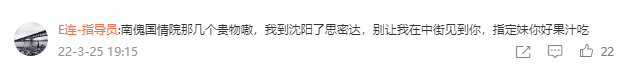“南傀国情院那几个贵物嗷,我到沈阳了思密达,别让我在中街见到你,指定妹你好果汁吃!”