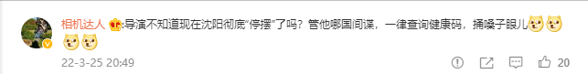 “导演不知道现在沈阳封闭管控吗?哪管他是哪个国家的间谍,落地之后一律查健康码,红码立马拉到宾馆隔离,天天捅嗓子眼儿,还打斗个啥。”