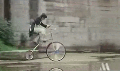 一把脚踏车,愣是被龙少爷骑出了水陆空三用飞行器的科幻感。
