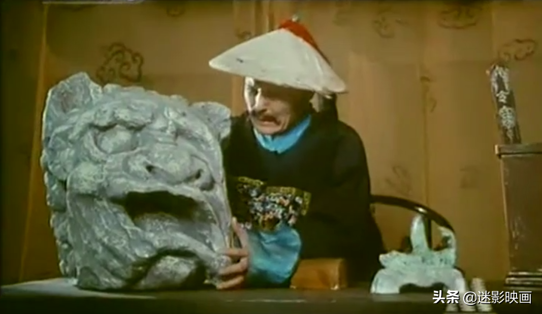 从这个歪嘴造型的石狮,就能够感受此片夸张滑稽喜剧的风格。