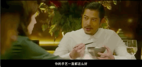 观众不得不把注意力放在餐桌上,欣赏汪先生处理食物的样子。