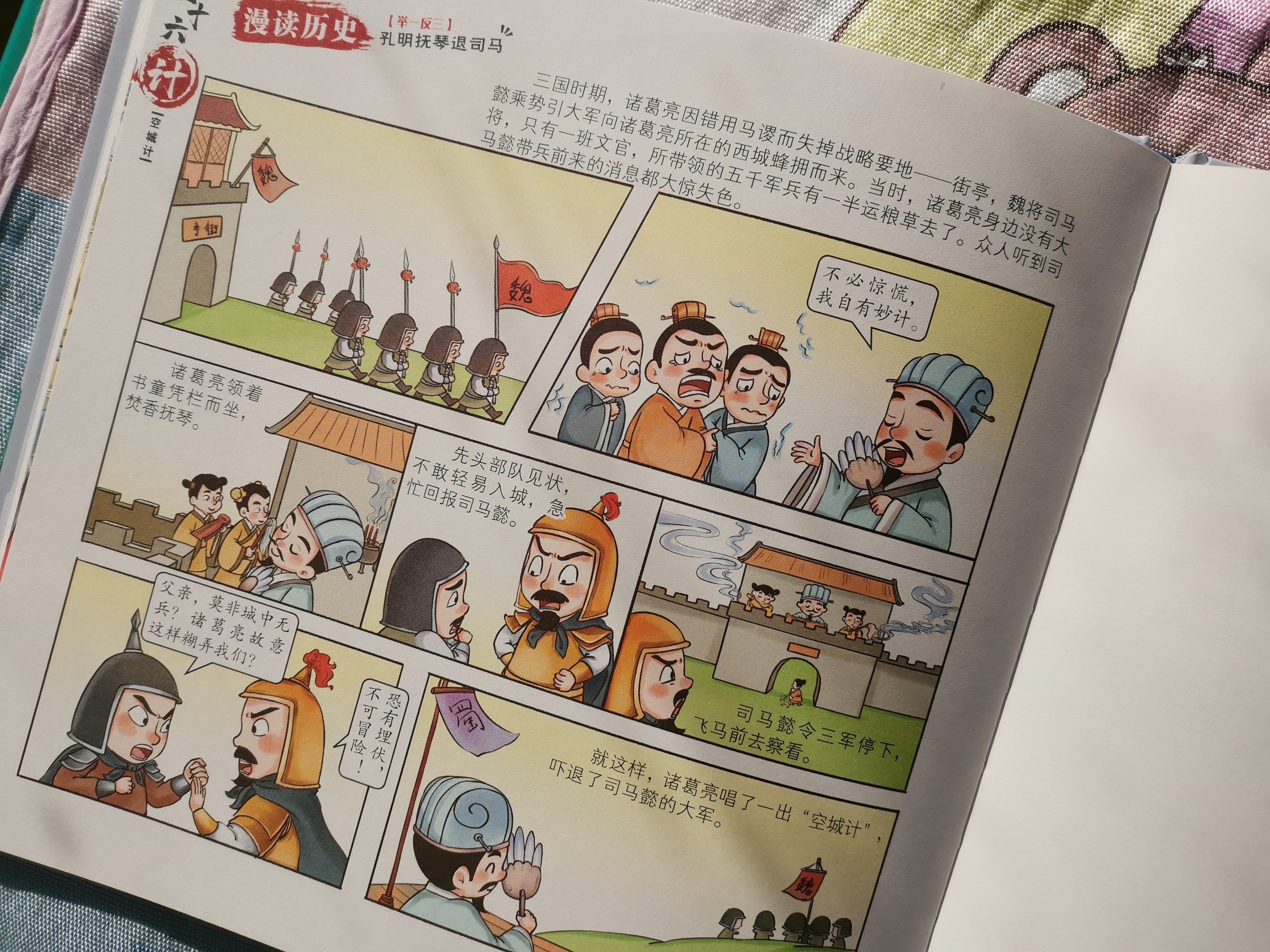 原来,孩子爷爷是个退休老教师,喜欢看《三十六计》,深觉这套书对孩子的成长十分有帮助,于是从孩子三岁就带着他读。孩子还没上小学,什么金蝉脱壳、抛砖引玉、调虎离山、李代桃僵、指桑骂槐、隔岸观火、树上开花、暗渡陈仓等等成语都烂熟于心,并且会在合适的时候脱口而出。