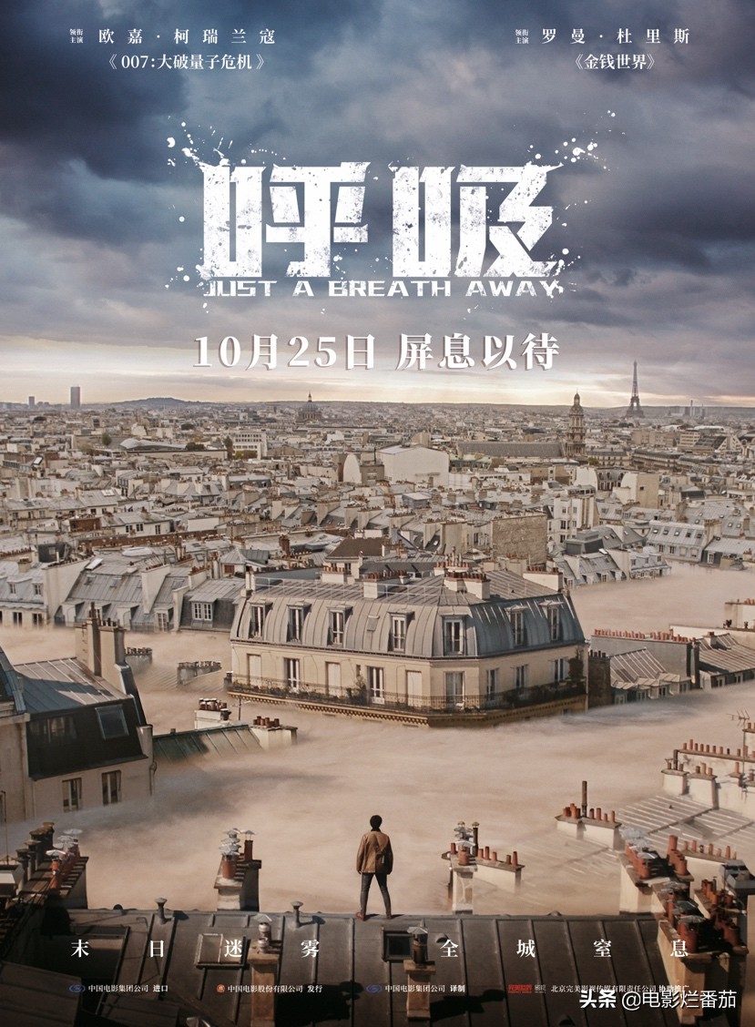 10月25日将上映的电影《呼吸》,从海报上可看到,美丽的巴黎被不明的雾霾笼罩,主角马蒂厄(罗曼·杜里斯 饰)独自一人站在这像海一样的灰蒙蒙的雾霾中,手足无措地俯望着这场安静却致命的危机。