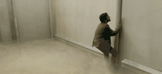 每次氧气桶即将耗尽,强烈的窒息感非常真实,仿佛喉咙瞬间被锁住。当主角终于突破重围回到空气充足的地方、瘫在地上上气不接下气的同时,让人在银幕前也忍不住随着主角大口喘气,从未感受到能够自由呼吸是如此珍贵。