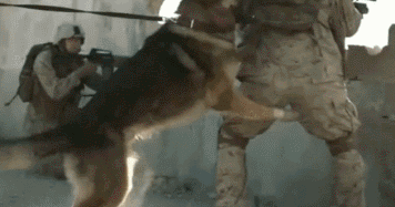 没错,咬她臀部的这条狗就是日后她被分配到的军犬瑞克斯……