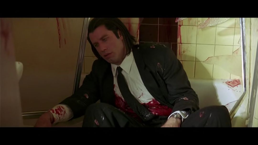 再看文森特,一个帅气的杀手,被蜜娅百般诱惑,想成长一番,却害怕老大追究,要跑到厕所去冷静,安慰自己这是老大对自己的考验。
