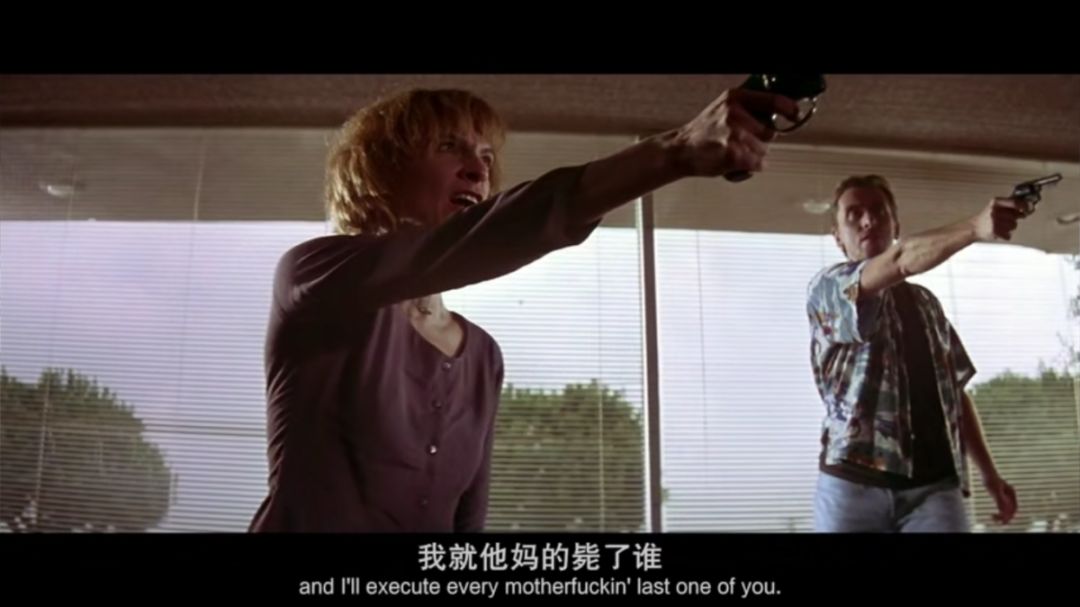 ok,回到主题,相信了解过1994年以后,能够在如此多的优秀作品中脱颖而出,《低俗小说》的优秀毋庸置疑。电影采取了开创性的环状叙事结构,给观众多个新奇的视角,整部电影处于一种欢快而荒诞的故事氛围,虽说讲述的是犯罪电影,但因为人物琐碎的话语,荒诞的行为而从没有紧张过,语言“低俗”,贴近真实,反正令我印象最深的就是单词“fuck”,而这个词在剧中出现了271次,听到后面甚至有一种莫名的爽感。