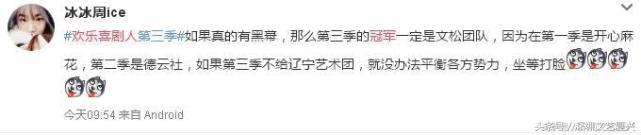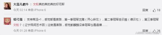 还有网友有理有据地分析说:假如真有黑幕,第三季应该轮到辽宁艺术团拿冠军了。