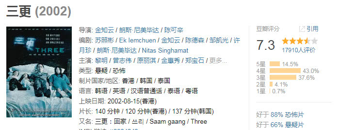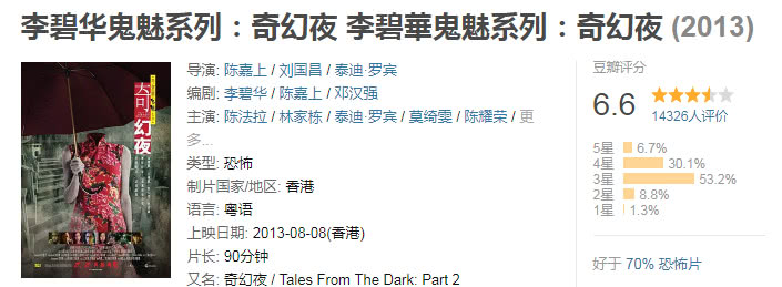 6、《阴阳路》,古天乐、蔡少芬、雷宇扬主演。 由雷宇扬叙述开始,分别带出四个鬼故事,第一个故事《抄墓碑》最后古天乐在码头边的山头上和死去的何伯一同缓缓地挥手的画面看的心理毛毛的。还有罗兰的“龙婆”形象真的是童年阴影,龙婆成就了一个经典角色,以至于只要有她出场的影片就觉得是鬼片,令人过目难忘。《阴阳路》系列一共拍了20部,也是香港鬼片里程碑式作品,前5部都还是不错的,画面精良,故事情节也完整,后面的就不建议看了。