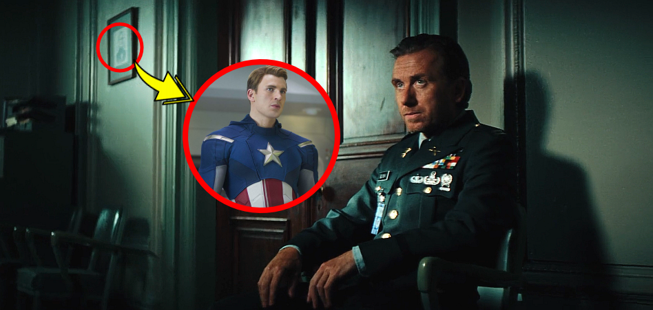 如果告诉你《无敌浩克》中藏着美国队长的线索你会相信吗?在电影32分钟的镜头中,反派憎恶的饰演者“蒂姆·罗斯”正坐在罗斯将军的办公室里,如果你仔细去看,就可以发现办公室墙壁上挂着一张照片,将其放大后就可以惊喜地发现,此人似乎与美队十分相似,胸口处的五角星也清晰看见,实际上,洛基将军正是美队的铁杆粉丝,将其挂在办公室也就不足为奇了。
