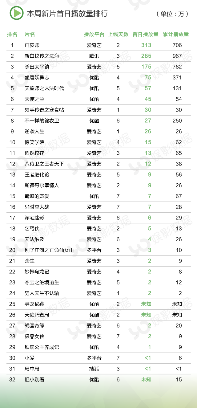 ★本周上新32部影片, 三部进入周榜前十