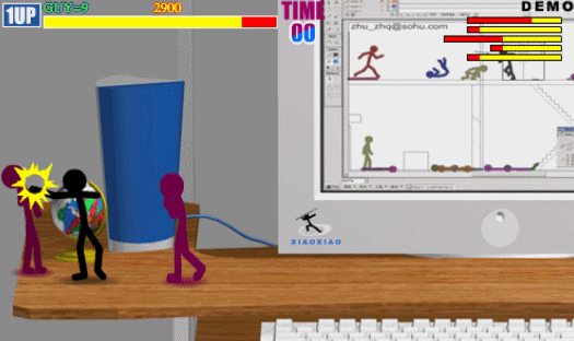 他创作的 flash 动画开头都有着 “ 小小作品 ” 的字样,而动画中的人物统统都是火柴人的形象,因此也成功地给火柴人打上了自己的烙印。