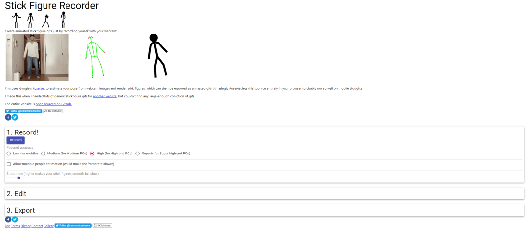 现在这些都不需要了,因为有个叫河本健的谷歌工程师,做了一个能把真人动作变成火柴人小动画的网页工具。