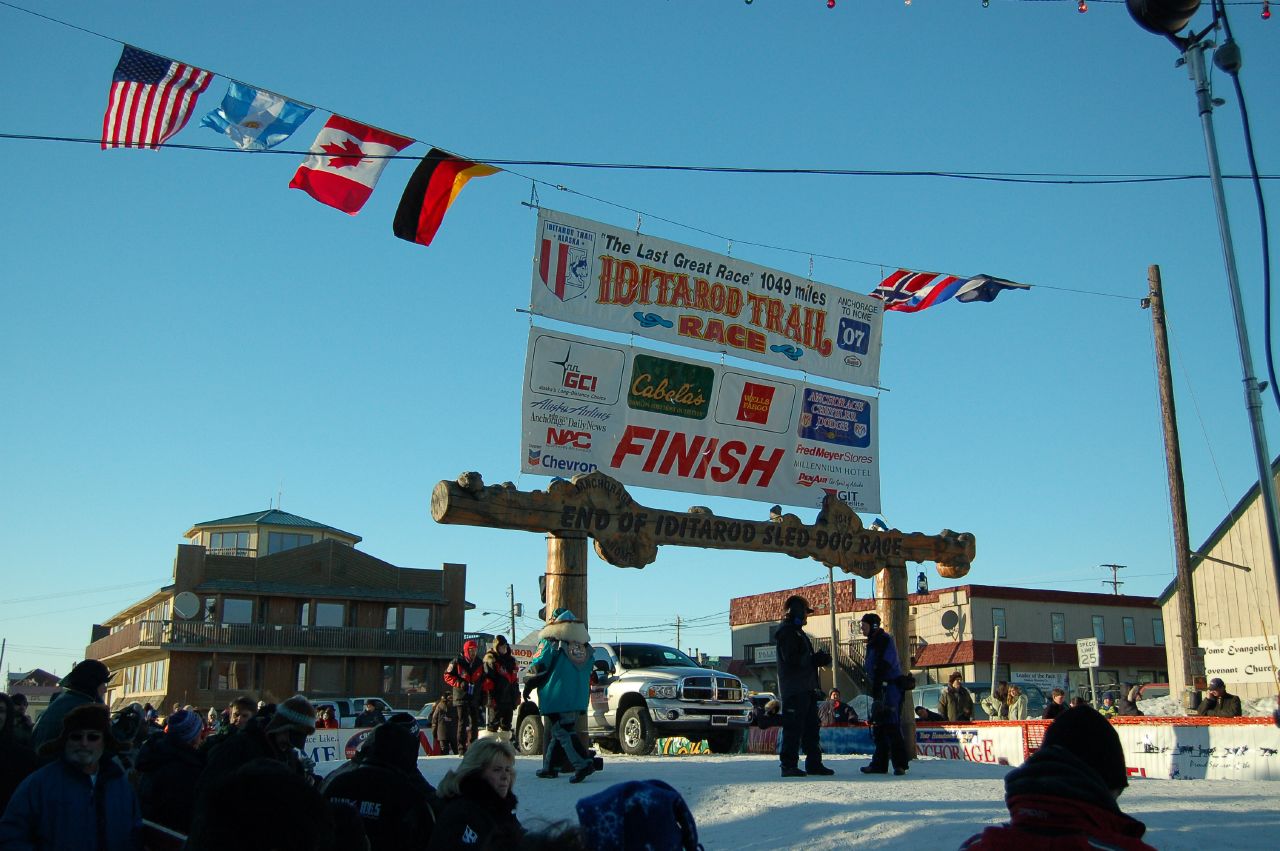 【图8】这场“接力大赛”于1月27日开始(奈纳),到2月1日胜利结束(诺姆),累计行程674英里(1085公里),总计耗时127小时(不到五天半)。在此期间,这批抗毒素血清一共辗转经过了20队雪橇手和雪橇狗的接力运输。他们有的在夜间行军,冒着零下四五十度的严寒。有的赶上了暴风雪,要顶着时速80英里的暴风雪前进。最终,最后一队雪橇手成功地将抗毒素血清交到了韦尔奇医生的手中。一场迫在眉睫的白喉传染病大爆发,就这样被扼杀在了摇篮里。毫无疑问,他们创造了一项世界纪录,这也是人类历史上的奇迹!图为最后那队雪橇犬胜利抵达诺姆镇之后,正站在大街中央休憩。